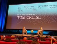 5月18日にカンヌ国際映画祭で『トップガン マーヴェリック』(5月27日公開)のプレミア上映を行ったトム・クルーズが、自身の映画人生を語るスペシャルトークセッションに登場した。イベント冒頭では、『卒業白書』(83)、『カクテル』(88)『レインマン』(88)『7月4日に生まれて』(89)といったキャリア形成の要となった作品から、『アイズ・ワイド・シャット』(99)、『マグノリア』(99)、『バニラ・スカイ』(01)など稀代の映像作家と組んだ作品群、そして1996年の『ミッション:インポッシブル』第1弾から、2023、24年にそれぞれ7作目と8作目が公開予定のシリーズまで、ハリウッド随一のスター、トム・クルーズのキャリアを総括する映像が流された。大歓声の中で登場したトムは、「(パンデミックを)乗り越えたいま、こうして皆さんのお顔が見える映画館にいられるのは、とても美しい瞬間です。とても光栄で、大きな意味を持ちます」と、万感の思いを口にした。