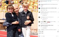 「Daily Mail」などには、至福のアルベール2世大公と、水色の縁の眼鏡にデニムのミニスカート、ピンクベージュ系のジャケット、ピンクのスニーカーという装いのガブリエラ公女と、プリント入りのグレーのジャージにスニーカー、グレーのフーディの上からグリーン系カーキ色のジャケットを着たジャック公子が、それぞれミッキー&ミニーと抱き合ったりする様子を捉えたショットが公開されている。