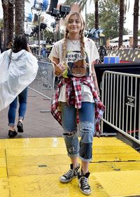 彼女は、ドレス姿ではなく、Tシャツに穴の開いたジーンズ、ヘアスタイルはおさげ髪という、まるで家の中をうろついているような姿で授賞式に登場。腰にはチェックのシャツを巻き、足元ははきこんだコンバースのハイカットスニーカーというリラックスしきった恰好で取材陣のカメラの前に立った。とてもレッドカーペット上のセレブには見えないファッションだが、奇抜なデザインや華美なドレスを見慣れた人々には、逆にその力の抜け方がファッショナブルに映ったようで、賞賛の声が上がっている。