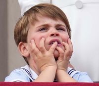 指をしゃぶったり、双方の小指を口に入れて広げるしぐさ、そしてベストポジションをとろうとエリザベス女王の前に割って入ろうとしたことで、キャサリン妃にたしなめられる場面も。そして飛行機の轟音に耳をふさぐしぐさや、目をつむって口を大きく開ける様子など、かつてのジョージ王子やシャーロット王女と比べてもかなりのオーバーリアクション。また両手で頬を下げて白目をむいたり、頬杖をついたりと七変化顔を連発したが、4歳児らしい、いきいきとした愛らしさや次男らしい天真爛漫さは好感度が高かったようで、今年はルイ王子がバルコニーの話題をさらった。