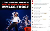 10部門でノミネートされた「マイケル・ジャクソン・ザ・ミュージカル(MJ: The Musical)」は、マイルズがミュージカル主演男優賞を受賞したほか、ミュージカル照明デザイン賞、ミュージカル音響デザイン賞、振付賞の4冠に輝いた。同作を紹介するため、ヌードカラーでワンショルダーのドレスのパリスと、ロングヘアにオールブラックのスーツという装いのプリンスが登壇した。