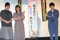 劇場版『からかい上手の高木さん』の大ヒット御礼舞台挨拶が6月25日にTOHOシネマズ日比谷で開催され、高橋李依、梶裕貴、大原ゆい子(主題歌アーティスト)が登壇。原作者の山本崇一朗から描き下ろしイラストとメッセージが届き、高橋が感激の涙を流した。