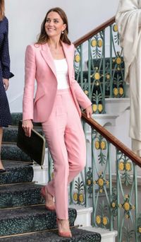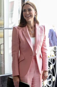 また、かねてから5歳までの教育の重要性を訴えているキャサリン妃は、2021年に立ち上げた「Royal Foundation Centre for Early Childhood」の代表として、英政府大臣らとのミーティングに参加。その際には、白いインナーに鉄板のアレキサンダー・マックイーンのペールピンクのパンツスーツという装いだった。