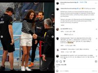 Instagramなどには、国旗の付いたナショナルチームのウェットスーツと帽子に身を包み、オレンジ色のヘルメットをかぶってレースに参加したキャサリン妃の勇姿も捉えられているが、やはり話題は、アーデムの紺と白のボーダーのトップスに、ホランド・クーパーのエレガントなショートパンツ、スペルガの白いスニーカーというマリンルックな装いだ。