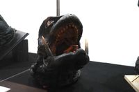 怪獣バトルの聖地であり都市破壊の象徴として欠かせない存在である東京タワーを舞台に、特撮の歴史を振り返る貴重な機会となっている本展。初公開の展示にも注目が集まるが、樋口真嗣特技監督による絵コンテや映画の台本、劇中で使われた小道具、アクション用、海用、アップ用など、さまざまな撮影シーンで使用されたスーツ、パーツの数々や、造形部愛用のちりとり(ガメラのイラスト入り!)まで展示。さらに、隅から隅までチェックしたいガメラVSイリスのバトルシーンの巨大ジオラマなども見どころとなっている。