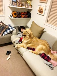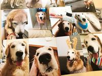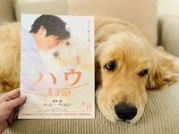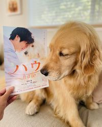 『ハウ』のチラシと一緒に写真を撮ってくれたゴールデンレトリバーのコメちゃん
