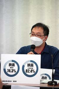 映画分野のジェンダーバランスについて調査結果を報告したのは、深田晃司監督。日本アカデミー賞やキネマ旬報ベストテン、東京国際映画祭など19の賞や映画祭の「審査員」人数合計の比率は、74.3パーセントが男性、25.5パーセントが女性。「受賞者」人数合計の比率は、82.4パーセントが男性、17.6パーセントが女性という結果となった。