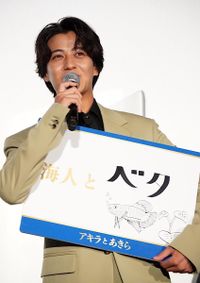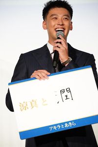 竹内は「涼真と潤」と書いたフリップを掲げ、「潤って呼び捨てにしたのは初めてです。カッコいいかなと思って」と微笑みながら、「僕は池井戸さんの作品に出るのが、今回が3作目。『下町ロケット』『陸王』ときて、今回の『アキラとあきら』。本当にご縁があるなと思いまして、池井戸さんの作品を3度もやらせていただけたことは、自分のなかでも誇り。『アキラとあきら』も自分のなかで一つ宝物になった」と池井戸作品との縁を喜んだ。