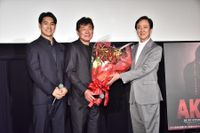 不世出の天才ボクサー・赤井英和の軌跡を追ったドキュメンタリー映画『AKAI』の公開記念舞台挨拶が10日都内劇場で行われ、赤井のほか、メガフォンを取った息子でプロボクサーの赤井英五郎監督、さらにスペシャルサンクスとして本作にクレジットされている歌舞伎俳優の坂東玉三郎が登壇した。