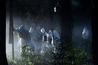 先日アメリカで行われたディズニーファンイベント「D23 Expo」において、ディズニー制作のオリジナルコンテンツの日本代表として紹介された本作。解禁された超ティザービジュアルは、何者かに噛まれた痕が残された不気味な腕が闇のなかに浮かぶデザインに。また2枚の場面写真には、血に染まりながら拳銃を構える阿川の姿と、森のなかで白い装束をまとって“なにか”をしている村人たちの姿がそれぞれ収められている。