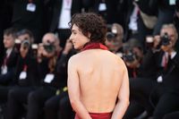 ティモシー・シャラメ、真っ赤な背中出しジャンプスーツでレッドカーペットに!