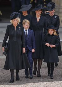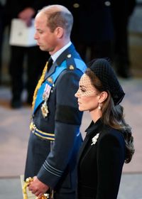 また喪服は、エリザベス女王の人生を物語るかのように、6月のエリザベス女王の在位70周年を祝うプラチナ・ジュビリーで女王とともにバッキンガム宮殿に立った際に着ていた白いアレキサンダー・マックイーンのコートドレスの黒バージョンをチョイス。ファッションの細部にわたって、夫ウィリアム皇太子のルーツとなるエリザベス女王はもちろんのこと、フィリップ王配、ダイアナ妃を敬い、代々続く英王室へ敬意を表している。