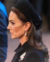 キャサリン皇太子妃は14日に、当時のチャールズ皇太子がカミラ夫人との不倫を認めた1994年6月に行われたパーティの当日に、ダイアナ妃がかの有名なリベンジドレスとともに身に着けていたパールのドロップイヤリングと、エリザベス女王から譲り受けたブローチを付けていたことが話題になった。そして国葬には、アレキサンダー・マックイーンの黒いコートドレスに、エリザベス女王のパールの4連のチョーカーとドロップイヤリングを着用。