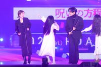 その後、ステージに立つ貞子の後ろから小芝と川村が登場。2人は貞子を追い抜くと、手を伸ばしついてくる貞子を気にしながらもランウェイを颯爽と闊歩した。