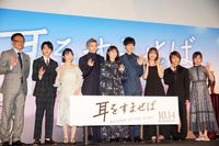 スタジオジブリのアニメ映画でも知られる、柊あおいの青春恋愛漫画を実写映画化した『耳をすませば』の公開初日舞台挨拶が10月14日に丸の内ピカデリーで開催され、清野菜名、松坂桃李、山田裕貴、内田理央、安原琉那、中川翼、荒木飛羽、住友沙来、平川雄一朗監督が登壇。柊からメッセージが届き、清野が感無量の面持ちを見せた。