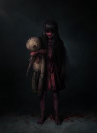 このたび入手したコンセプトアートは全部で4枚。血にまみれた“赤い人”がエミリーと名付けられた人形を大事に抱えて不敵な笑みを浮かべる姿や、明日香たちを殺そうと飛び掛かってくる瞬間を描いた姿。名作ホラー『エクソシスト』(73)の伝説的な“スパイダーウォーク”を彷彿とさせる特徴的なポーズをとる姿、そしてどこか不気味なエミリー人形の姿がそれぞれ描かれている。
