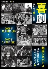 今回は追悼特集となるが、そこにしめやかさは必要ない。なんといっても<喜劇 みんなで笑い初め!>と銘打つように、上映される作品に共通するのはひたすら明るい笑いなのだから。不況にあえぐ今だからこそ、喜劇役者・森繁久彌のエネルギッシュな演技を観て思う存分笑ってほしい。【トライワークス】
