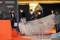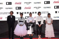 この1年の日本映画を対象に特に海外に紹介されるべき日本映画という観点から選考された作品を上映する部門、Nippon Cinema Now部門『ひとりぼっちじゃない』で映画初主演を果たしたKing Gnuの井口理も参加。共演の馬場ふみか、河合優実と並び、会場に手を振った。『わたしのお母さん』で、母との関係にわだかまりを抱える主人公に扮した井上真央は、首元のリボンがキュートなグリーンのベロア調ドレスをセレクト。司会から「動画のカメラも来ています」と案内されると、杉田真一監督とお茶目に動いてみせて会場を笑わせていた。