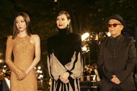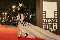 ステージに上がる際には、2人がかりで裾のサポートをするひと幕も。透け感ドレスからは美脚をのぞかせ、タイトに仕上げたボブのヘアスタイル、キリリとした赤リップもステキで、沿道の映画ファンからはその美しさに「きれい!」とうっとりとした感想が上がっていた。