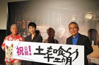 11月11日、映画『土を喰らう十二ヵ月』の初日舞台挨拶イベントが新宿ピカデリーにて開催され、松たか子、料理監修を手掛けた土井善晴、中江裕司監督が登壇した。