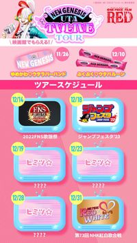 ツアーの初日を飾るのは、フジテレビ系にて12月14日(水)に放送される「2022FNS歌謡祭」。「新時代」、「逆光」、「世界のつづき」の豪華3曲をスペシャルメドレーで披露する。12月18日(日)には、「ジャンプフェスタ‘23」の「ONE PIECE」ジャンプスーパーステージ内にて、ウタがスペシャルパフォーマンスを披露する。そして、先日の発表でも大きな盛り上がりを見せた12月31日(土)にNHKにて放送される「第73回NHK紅白歌合戦」にもウタが出演。番組とのスペシャルコラボレーション企画「ONE PIECE UTA LIVE RED×WHITE」の実施も決定し、放送に向け期待は高まるばかりだ。