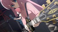 そんな時、公園でうなだれていたぼっちは、他校の一学年上の先輩でドラム担当の伊地知虹夏(声:鈴代紗弓)に声をかけられる。ギターを持ったぼっちの姿を見て、自身のバンド「結束バンド」のギタリストとしてまもなく始まるライブに出演してほしいというのだ。元いたギタリストが逃亡してしまい、背に腹は代えられない虹夏からの熱心なスカウトを断り切れず、突然ライブハウスのステージに上がることに(ここで“ぼっち”のニックネームを命名される)。こうして、ぼっちのバンド活動がスタートし、虹夏の幼なじみでクールなベーシストの山田リョウ(声:水野朔)、あとから正式加入したギターボーカルの喜多郁代(声:長谷川育美)と共に、「結束バンド」を有名バンドにするための青春(?)がスタートする!