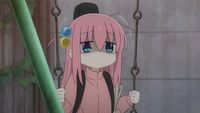 また、ぼっちは基本的に自分のことを“ミジンコ並み”の存在価値だと思っており、バンドメンバーやライブハウスのスタッフなど、誰かに負担や迷惑をかけてしまったと感じると全力でお詫びしようとする極端な思考の持ち主でもある。その思考は斜め上な妄想力として発揮され、ライブ前の緊張を解きほぐすために、これまでに何度もイメージしてきた“文化祭ライブ→初ワンマン→武道館”のストーリーを妄想したり、学校のお昼休みにぼっち飯を食べている時には、いつか歌番組に出演した際に「学生時代は友だちいなくて~」というギャップトークができる…!と、ある意味でポジティブ(?)なことも妄想したりする。一方で、虹夏や喜多からSNSを薦められると、“いいね!”を求めまくる、文字通りの“承認欲求モンスター”になって街を破壊する想像を膨らませ、パニック状態に陥ったりしている。