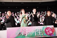 いよいよ初日を迎えたが、完成作を観た時に「こんなに不思議な感覚になったことはない」と客観的に観られなかった作品だと明かした戸田は、「世代や異性、男性によっても見方が異なってくる作品だと思う。これから皆さんが誰に感情移入し、どのように受け取るのか興味深い。皆さんの声を聞けるのが楽しみです」と反響を期待していた。永野は「初日を迎えちゃったので、戸田さんと過ごす時間がだんだん終わりに近づいている」と寂しい胸の内を吐露。「今日は皆さんを置き去りにして、私が楽しみたい」と戸田への愛着を語り、「戸田さんに初めてお会いできたのが『母性』。初めてお会いした日のことを思い出しながら、今日の朝は来た」と笑顔を見せていた。