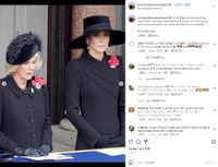13日に開催された戦没者追悼式典リメンバランス・サンデーのイベントで、カミラ王妃と共に外務・英連邦・開発省ビルのバルコニーに立ったキャサリン皇太子妃は、フィリップ・トレイシーのカスタムメイドの帽子にキャサリン・ウォーカーのコートドレス、ダイアナ妃が1990年に当時の明仁天皇の即位の礼で来日した際に着用していたパールのイヤリングという装い。ポピー3つのブローチは前日と同じものだが、その下に輝くダイヤのブローチに熱視線が送られた。