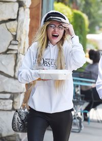 白いアンクルブーツにスウェットパンツを履いたベラが、ロサンゼルスの夜の街を歩く様子がデイリー・メール紙に掲載されているが、トップスは黒い水玉のシアー素材で、乳首も胸も丸出しだ。