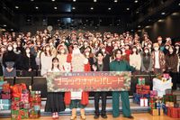 中村光の同名コミックを実写映画化した『ブラックナイトパレード』(12月23日公開)のサンタクロースイベントが12月14日に丸ビルホール&コンファレンススクエアで開催され、吉沢亮、橋本環奈、中川大志が出席。さらにフィンランドのサンタクロース村があるロヴァ二エミ市から、本物のサンタクロースが登場。3人がサンタと爆笑のトークを繰り広げた。