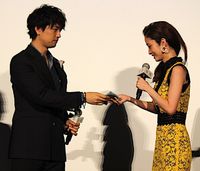 上戸は「最高の現場だった。『昼顔』との出会いはすごく幸せでした。たくさんの方に愛してもらいたい映画ではないかもしれないけれど、心に響く映画になったらいいと思います」と心を込めつつ、「泣きやまないんですけど、斎藤さん」と斎藤に助けを求めた。さらに「斎藤さんが脱ぎます」と泣き止むまでの場を斎藤が脱いでつなぐよう、指示。斎藤もシャツのボタンに手をかけるなど悪ノリし、会場の爆笑をさらった。