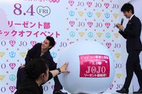 「JOJOリーゼント部」とは映画公式サイトで部員を募集し、このヘアスタイルを全世界に普及させようとする映画公認の部活動。この日は、付け毛や地毛をアレンジして、思い思いのリーゼントスタイルをした女子中高生、約300人が会場に集まった。山崎が「女性がやってもすごく似合う。すごく素敵な髪型」と絶賛すると、女子たちからは「イエーイ!」と喜びの声が上がっていた。