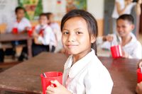 「レッドカップキャンペーン」とは、世界に飢餓で苦しんでいる子どもたちや、食べるために働いて学校にいけない子どもたちがたくさんいる現状を多くの人々に伝え、一人でも多くの子どもたちに学校給食を届けるためのキャンペーン。国連WFPが給食を入れる容器として使っている赤いカップがキャンペーンのシンボルとなっている。