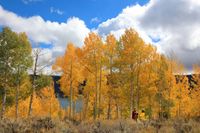 解禁となったのは、ロケ地の一つであるユタ州南部のフィッシュレイク国立森林公園の場面写真3枚。このポプラの木立は一見普通の林のように見えるが、実は4万7千本全ての木が一つの根のDNAを共有しており、巨大な生命体となっているという。これらはラテン語で「広がる」という意味を持つ「パンド」と名付けられ、「震える巨人」とも呼ばれている。推定樹齢は甘く見積もっても100万年を超えると言われており、世界最古の生命体の一つだ。