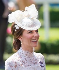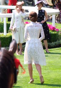 キャサリン妃が、純白のレースのワンピースでロイヤルアスコットに出席した。女王の誕生祝いの式典では鮮やかなピンクの衣装でひときわ目立ったキャサリン妃だが、今回は全身レースの優雅なワンピースでいかにも上品な貴婦人といった雰囲気。