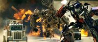 本作、そしてシリーズにおいてもオプティマスの最初の見せ場と言えるのが、地雷除去車から変形するボーンクラッシャーとの一騎打ち。走行しながらロボットモードに変形した彼らは、フリーウェイで取っ組み合いの肉弾戦を展開。最後はボーンクラッシャーをヘッドロックで押さえつけ、エナジーブレードでその首を斬り落として機能停止に追いやった。テレビアニメではレーザー銃の撃ち合いが中心で直接的な暴力描写は抑えられていただけに、金属の破片やオイルを流しながら激闘する姿に衝撃を覚えた人もいるだろう。ボーンクラッシャー戦は、「なんとしてでもディセプティコンを阻止する!」というオプティマスの決意が伝わってくる名勝負だった。