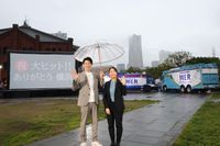 夕方には野外シアターイベント「SEASIDE CINEMA 2023」とコラボし、横浜赤レンガ倉庫で一夜限りの特別上映(屋外上映)が予定されていたが、荒天のためやむなく中止に。鈴木と松木監督は、撮影でも使われた横浜赤レンガ倉庫やランドマークタワー、横浜みなとみらいの街並み、そして“TO1 ”と“YO1”の2台のERカーを背景に記念撮影を行い、あらためて横浜の街への感謝を胸に刻んでいた。