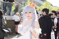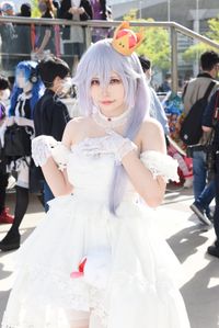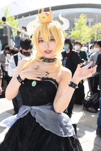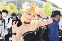 クッパ姫というキャラ設定でコスプレしていたのが、はわわ大明神さん。「こだわり…というほどでもないんですけど、『牙を取り付けること』に初めて挑戦しました。どんな表情のときでも牙が印象的なキャラクターなので、入れ歯安定剤で取り付けて。写真を撮っていただく際は、牙がよく見える表情になるように心掛けました。今回の『ニコ超』は、映画の公開と時期がいっしょだったので、『コスプレをするならちょうどいいタイミングだ!』と思って。友だちと‟マリオ併せ”で参加したんですけど、思っていた以上に大勢の方に注目してもらえて、すごくうれしいです!」。