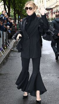 袖だけでなく裾までも立体的な黒スーツにも注目 写真:SPLASH/アフロ