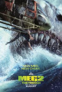 このたび、解禁となったのは大迫力の最新US版アート3点。1枚には、前作にも登場し、注目を集めた犬のピピンが桟橋で見上げる先に、波の中から現れたMEGがいまにも齧り付かんと大きく口を開けているシーンが切り取られている。また、ヘリコプターにぶら下がり腕を伸ばして何かを掴もうとする新キャラクターのジウミン・ジャン(ウー・ジン)の背後に、機体ごと丸吞みにしようと飛沫をあげて襲い掛かるMEGを写した躍動感溢れるもの。さらには飛行機に狙いを定め、底なしの胃袋を表すかのように大きく開いたMEGの獰猛な歯を真正面から映しだした規格外のものまで、いずれもビジュアルに収まらないほどのスケールで、MEGの恐ろしさを十分に表現している。