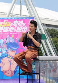 「リアル脱出ゲーム」とTVアニメ「ジョジョの奇妙な冒険 ダイヤモンドは砕けない」のコラボレーションイベント「ジョジョの奇妙な遊園地からの脱出」が、7月15日より東京ドームシティ アトラクションズで行われる。開催に先駆けた7月9日、映画『ジョジョの奇妙な冒険 ダイヤモンドは砕けない 第一章』(8月4日公開)に主演する山崎賢人が記者発表に出席。観客賞を受賞したヌーシャテル国際ファンタスティック映画祭での体験を語った。