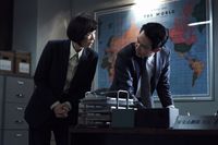 解禁されたのは、安全企画部(旧KCIA)の組織内に潜む“北”のスパイによって繰り広げられる頭脳戦、銃撃戦、諜報戦を捉えた場面写真たち。海外次長 パク・ピョンホ(ジョンジェ) や国内次長のキム・ジョンド(ウソン)が銃を手に険しい表情を浮かべるカットからは、視線の先にいる人物との激しい戦いが想像される。また、スパイを見つけだすためパクとキムがそれぞれ相手チームへ疑いの目を向け、捜査を行っているシーンからは、張り詰めた空気が伝わってくる。パクの部下バン・ジュギョン(チョン・ヘジン)と、キムの部下チャン・チョルソン(ホ・ソンテ)の姿もあるが、はたしてスパイは誰なのか、行きつく先にどんな結末が待っているのか、本作への期待が高まる。