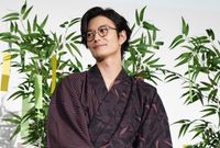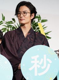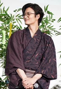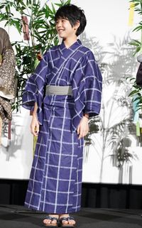 【写真を見る】メガネ&浴衣がよく似合う!シックなブラウンの浴衣で登壇した岡田将生