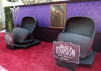 本作の元となったカリフォルニア ディズニーランド・リゾートの「ホーンテッドマンション」の前にレッドカーペットが敷かれて行われた今回のプレミアイベント。会場では劇中でキャストが使用したコスチュームや、アトラクションでお馴染みの胸像などがお披露目。招待されたファンのなかにはアトラクションに登場するゴーストになりきった衣装で参加する人もいるなど大盛況。