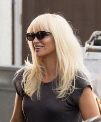 真っ赤なボディコンワンピを着て、はすっぱな雰囲気でタバコを吸っている写真や、いかにもヴェルサーチらしい派手な刺繍が施された黒革のシャツとパンツを着ている写真は、遠くから見るとドナテラ本人かと見間違うほど。