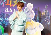 ステージ上は提灯やわたあめなど「夏祭り」をイメージした飾り付けが施され、川口、玉森も浴衣姿で登場。エンバーとウェイド、2人の物語がとてもロマンチックだと評判の本作。火と水のエレメントであるエンバーとウェイドについて「物理的には交われない2人が心を通わせていく姿がとてもロマンチック」だと話した川口。玉森は「心の距離を縮めていく様も素晴らしいけれど、触れ合えないから、せつない顔を見せる。そんなところにキュンキュンします」とおすすめのロマンチックポイントを挙げた。
