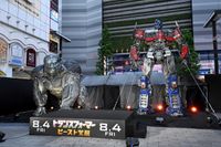 「トランスフォーマー」最新作にして、新シリーズの幕開けとなる『トランスフォーマー/ビースト覚醒』(公開中)。等身大トランスフォーマーお披露目イベントが8月1日に新宿のシネシティ広場で開催され、日本語吹替版声優を務めたSexy Zoneの中島健人、仲里依紗が登壇。イベントでは高さ6メートルの「オプティマスプライム」と4メートルの「オプティマスプライマル」という“等身大”トランスフォーマー2体がお披露目された。