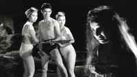 『白線秘密地帯』(58)で本格的な俳優デビューを迎え、『海女の化物屋敷』(59)が映画初主演となった。カルト的人気を誇る曲谷守平が監督した『海女の化物屋敷』は、殺人事件と心霊現象、そして隠された財宝が絡み合う“海女もの"スリラー。資産家である青山家は、父が自殺して以降、母親の狂死、姉の家出、兄の遭難、兄嫁の変死と次々に不幸が続いていた。ある夜、残された由美(瀬戸麗子)は兄嫁の亡霊に襲われる。助けを求められた親友の恭子(三原葉子)は、恋人である野々宮刑事(菅原)に調査を依頼するが、青山家での一件とつながる殺人事件が発生してしまう。公開当時25歳、初々しくも勇ましい菅原の姿に注目したい一作だ。