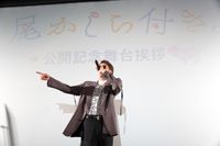 小西は「ええー!」と戸惑いながらも、観客からの拍手に背中を押されて手でしっぽの形を作りながら、「ブンブン、しっぽTV」と即興で挨拶を披露。「すごく恥ずかしい!」と大照れとなり、会場の笑いを誘った。また本作の音楽担当として主題歌「UNIQUE」と劇中歌の計3曲を書き下ろしたHilcrhymeは、「しっぽを鍛えます」と回答。「ゴリゴリの太いしっぽにして、最終的には(『ドラゴンボール』の)フリーザのように敵を倒せるぐらいにして、堂々と街中を歩きたい」とこちらも“自慢する派”だと話した。